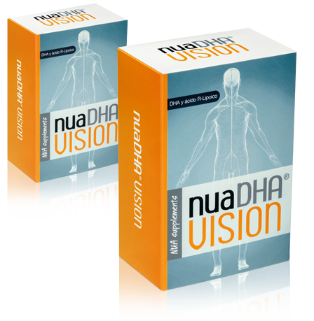 - DHA (ácido docosahexaenoico): más de un 50% de la grasa de la ‘mácula’ (zona central de la retina responsable de la visión nítida y definida de los objetos que nos rodean) es DHA. Asimismo el DHA es esencial para el buen estado de la superficie ocular. NuaDHAVision® aporta 1.000 mg/día de DHA puro.